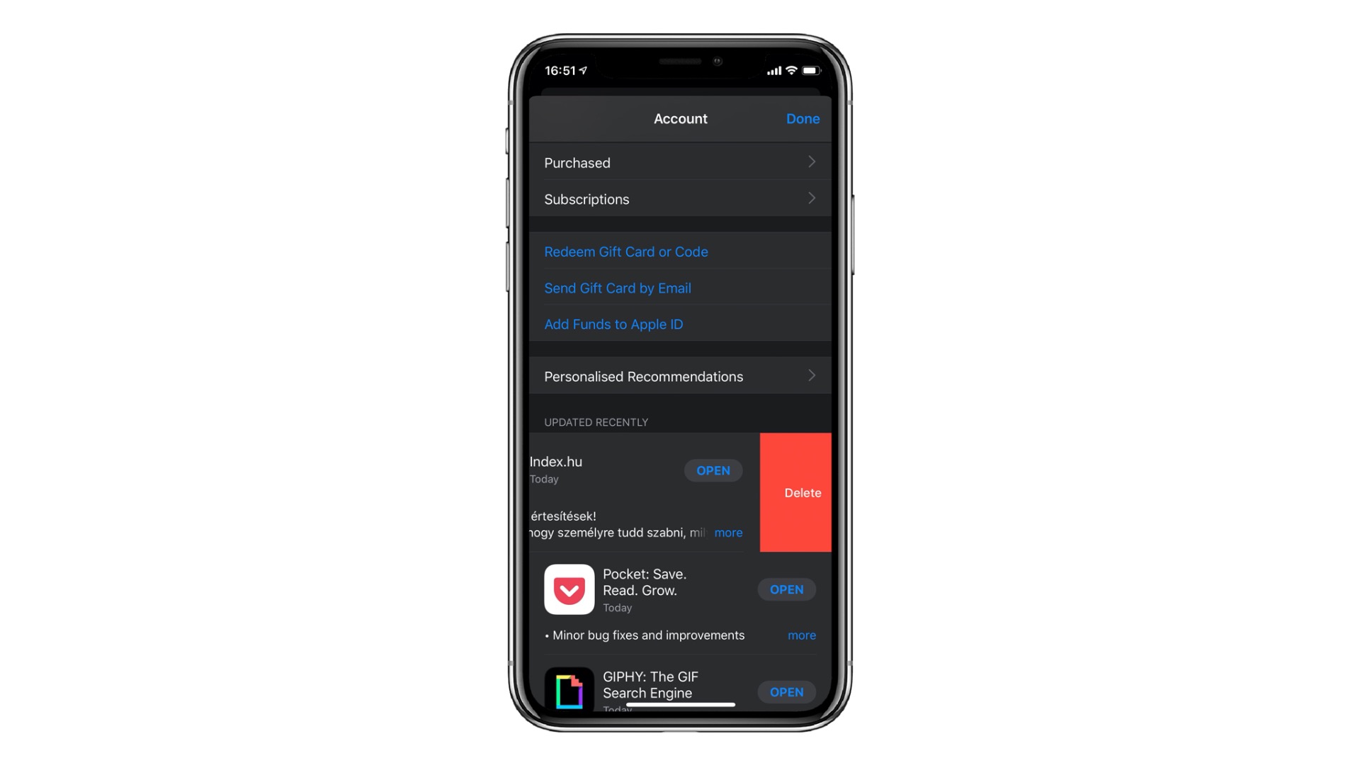 V iOS 13 a iPadOS je tiež jednoduché vymazať jednotlivé aplikácie zo zariadenia priamo zo zoznamu aktualizácií v App Store. Stačí potiahnuť prstom doľava po vybranej aplikácii a potom klepnúť na Vymazať.