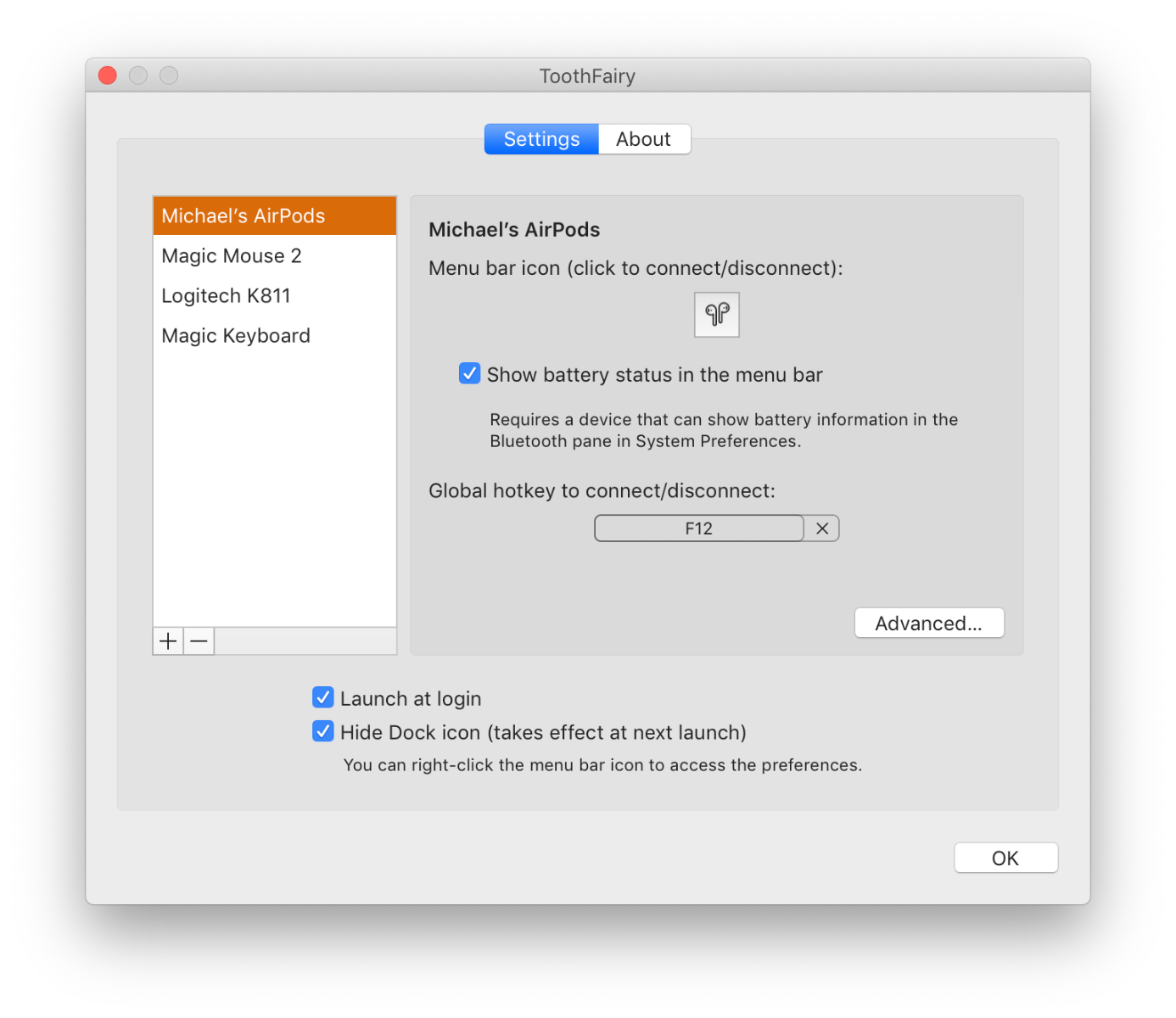 A teraz máme pre vás jedno odporúčanie. ToothFairy je aplikácia, ktorú po inštalácii nájdete v lište na Macu. Stačí na ňu kliknúť a vaše AirPods sa automaticky pripoja k Macu. To je všetko. Prípadne si na pripojenie môžete pridať klávesovú skratku. Všetky problémy s párovaním a prepínaním sú vyriešené, AirPods sa pripoja okamžite.