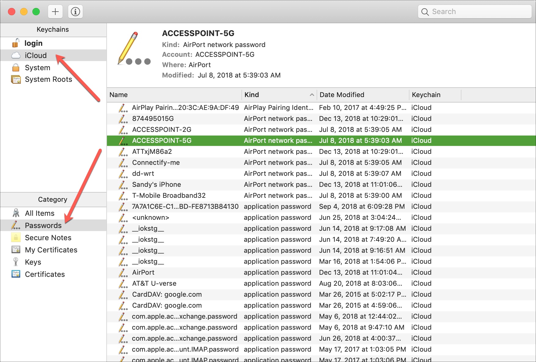 - Nájdite Wi-Fi sieť, ku ktorej potrebujete zistiť heslo. Pre uľahčenie si môžete zoznam roztriediť podľa názvu alebo dátumu.