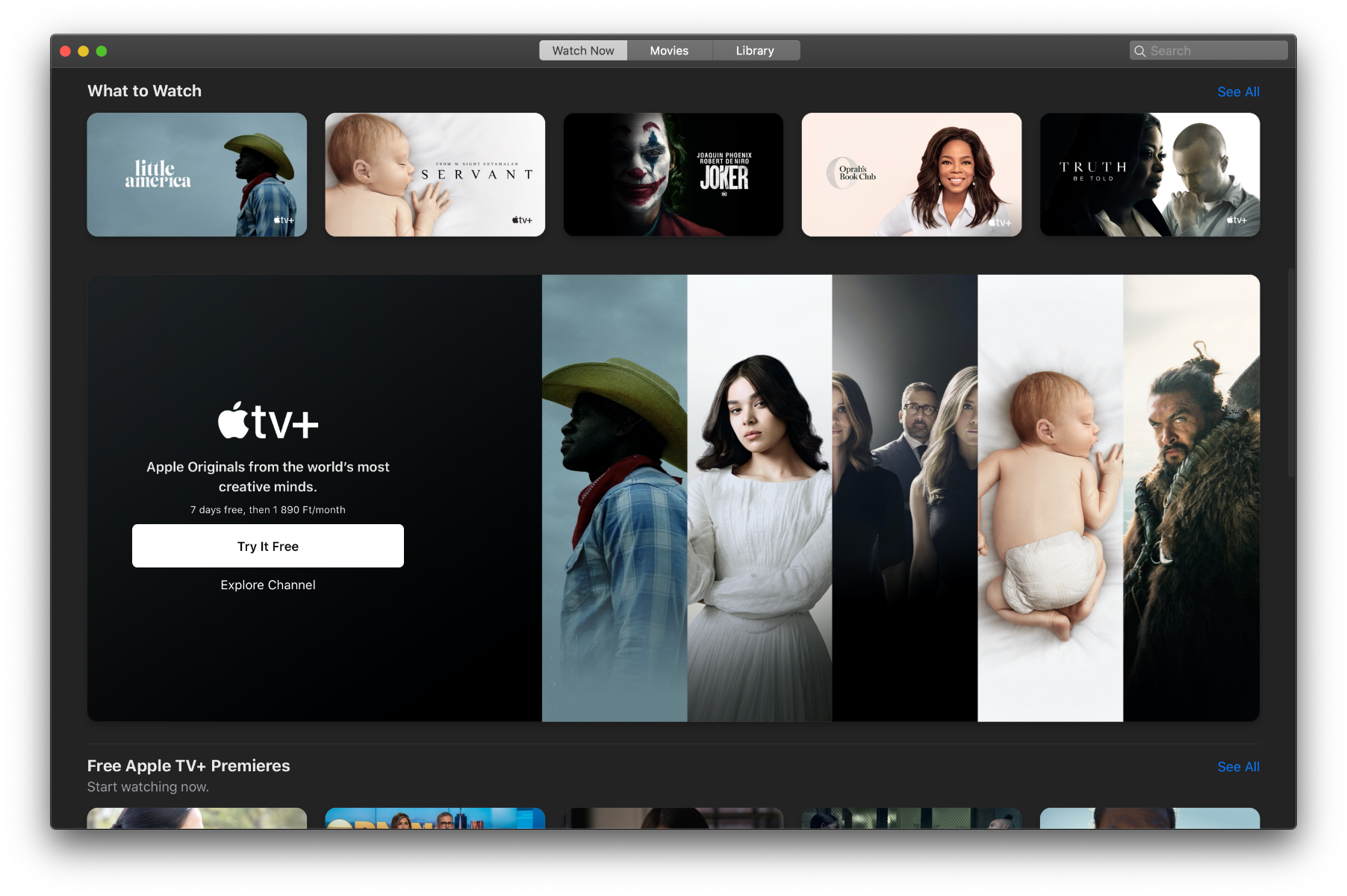 Ak chcete aktivovať Apple TV+, otvorte aplikáciu TV na zariadení, na ktorom ste prihlásení s tým istým Apple ID, s ktorým ste aktivovali svoje nové zariadenie (ktoré vás oprávňuje na ročné skúšobné obdobie). Prvá vec, ktorú uvidíte, je táto ponuka. Začnite skúšobné obdobie a užívajte si rýchlo sa rozširujúci výber programov Apple TV.
