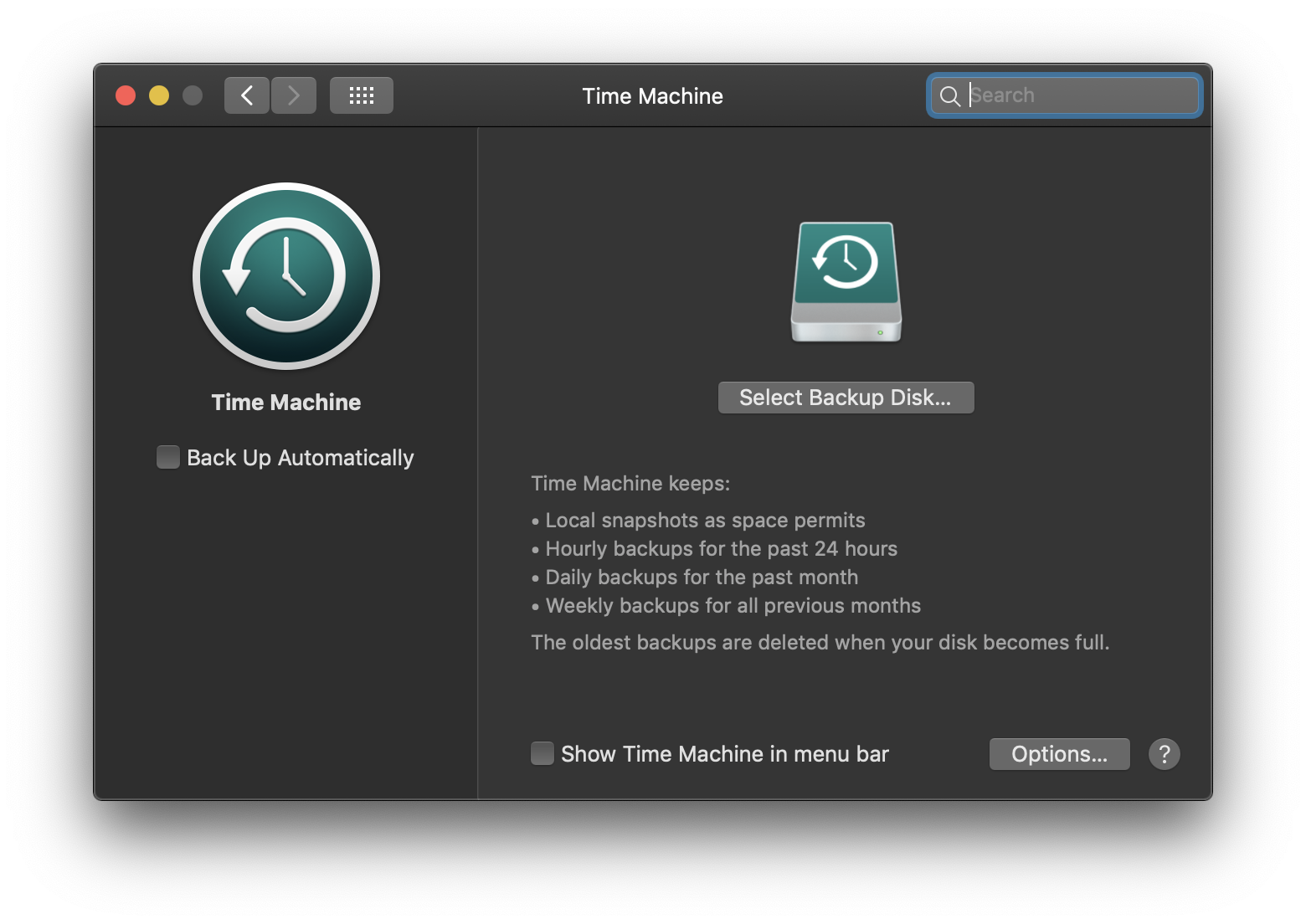 Time Machine je natívne riešenie pre zálohovanie macOS. Externý hard disk môžete pripojiť cez USB alebo Thunderbolt (v prípade starších Macov použijete FireWire) alebo bezdrôtovo cez sieť. Time Machine zálohuje každú hodinu a ak vám začne dochádzať miesto na disku, staršie zálohy vymaže. Je to skvelý prvý krok každého systematického riešenia zálohovania, ktorý je integrovaný priamo do operačného systému.