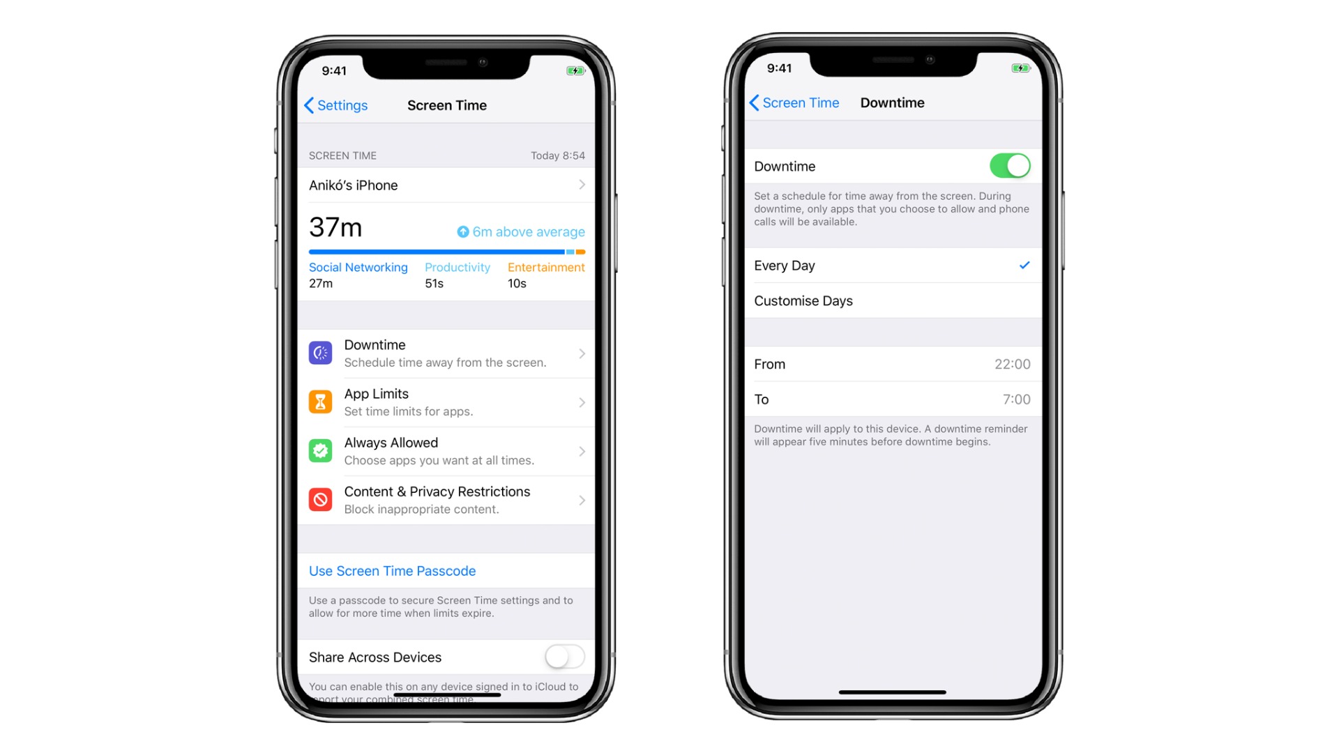 To by sa hodilo na obmedzenie používania iPhonu počas vyučovania, rodinných jedál alebo času, kedy už treba ísť do postele. Od iOS 12.2 je tu však možnosť nastaviť rozličné intervaly odpočinku pre rôzne dni v týždni. Vďaka tomu môžete používať túto funkciu v súlade s rytmom rodinného života a s nabitým programom vás i vašich detí. Môžete napríklad vziať do úvahy rodinný program alebo neskoršiu večierku cez víkendy alebo mimoškolské aktivity detí.
