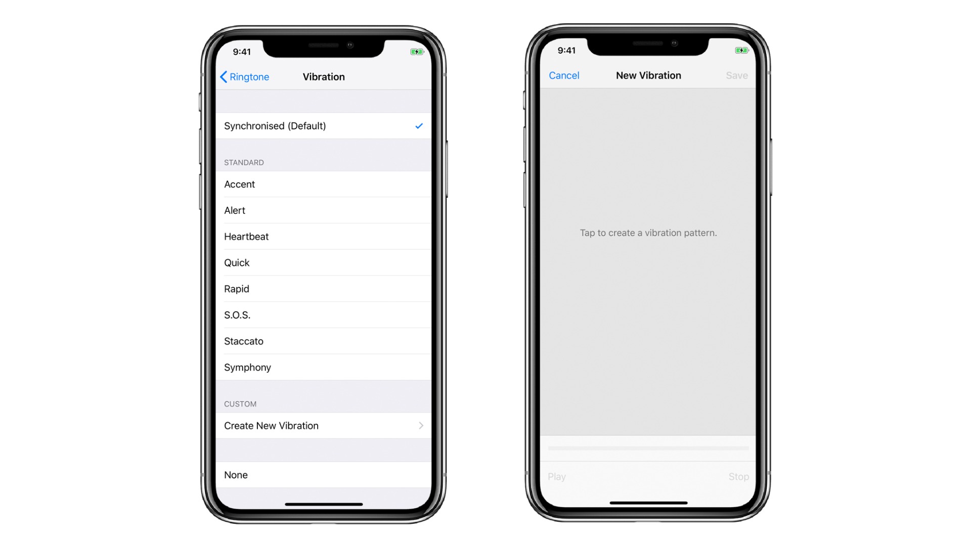 Možno ste medzi predvolenými možnosťami nenašli vibrovanie, ktoré sa vám páči alebo vám pripadá dostatočne výrazné. Žiaden problém, iOS ponúka možnosť vytvoriť si vlastné vibrovanie. Ak chcete popustiť uzdu svojej kreativite v rytme, nasledujte kroky pre prispôsobenie vibrovania popísané vyššie, ale namiesto predvolenej možnosti: