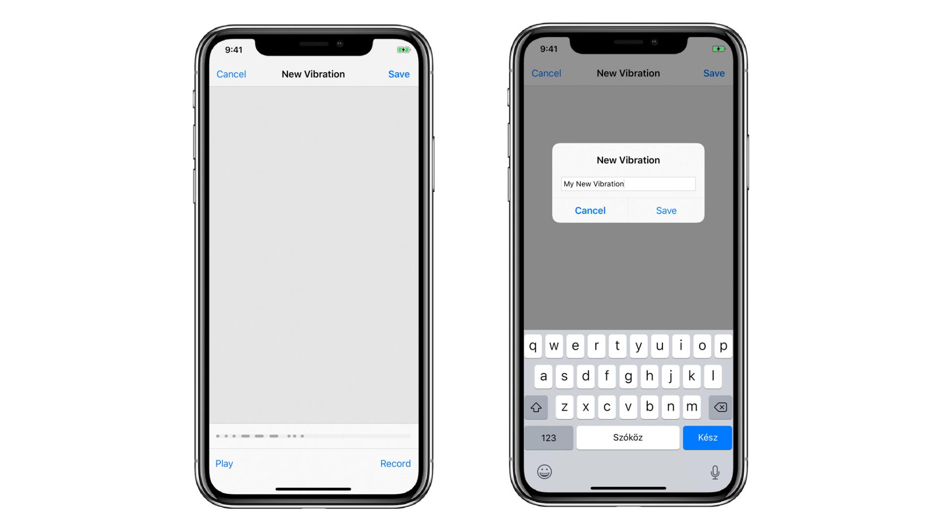 - Teraz si môžete vibrovanie prehrať klepnutím na Prehrať vľavo dole alebo nahrať nové vibrovanie klepnutím na Nahrať vpravo dole.