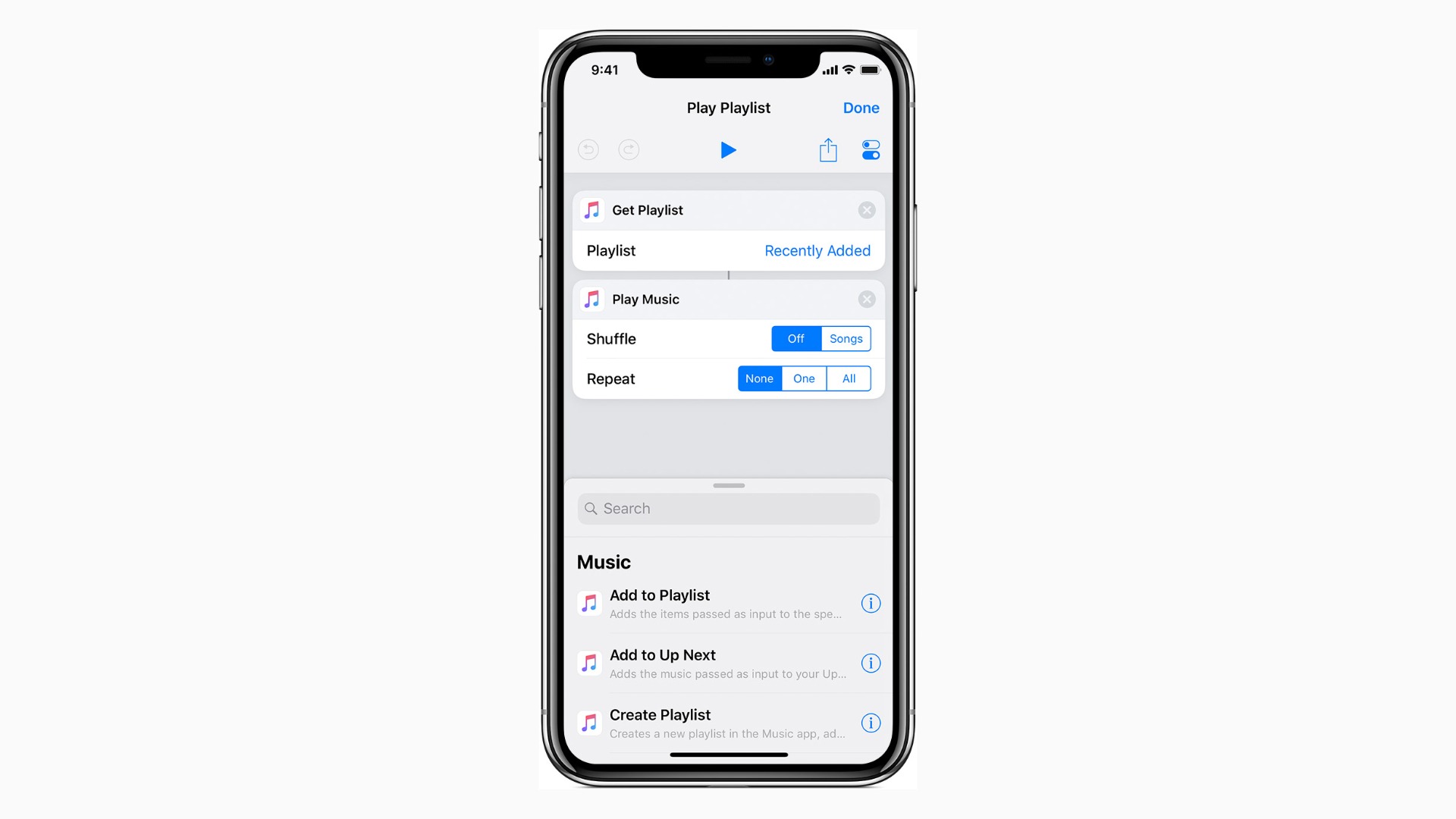 - Fungovanie skratky si môžete vyskúšať klepnutím na tlačidlo Prehrať.