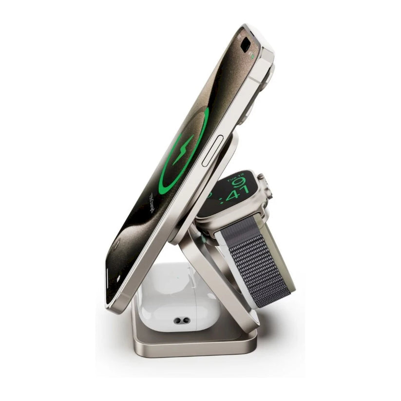 Magnetická bezdrôtová nabíjačka Cubenest Qi2 3v1 SQ312 Fold Pro - titánová